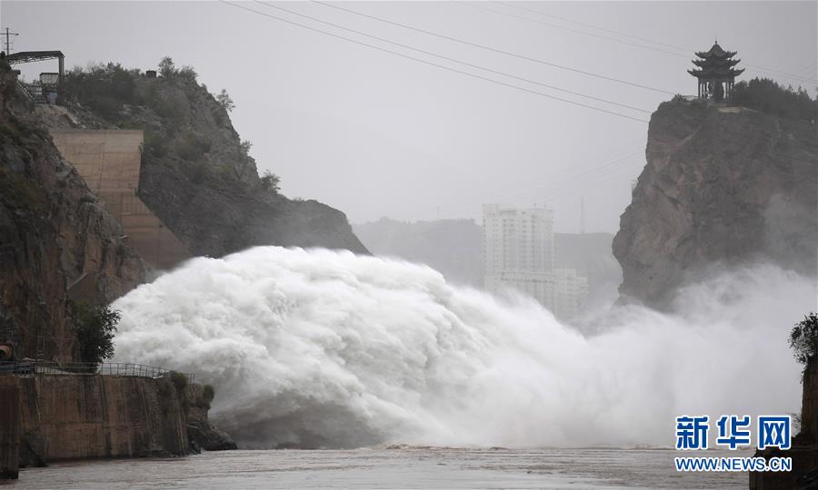 7月15日,刘家峡水库进行排沙泄洪作业。当日,按照黄河防总调度要求,刘家峡水库排沙洞和溢洪道交替进行排沙泄洪作业,排出机组进水口前的泥沙淤积,确保下游河道安全度汛。据介绍,受近日持续降雨影响,刘家峡水库已达到汛限水位,转入防洪运用。截至7月15日8时,该水库日均出库流量1830立方米/秒,刘家峡水电厂已全面完成泄水建筑物、闸门、保坝电源、厂房排水系统等防汛设施的检修调试,为黄河平稳度汛提供有力保障。新华社记者 陈斌 摄
