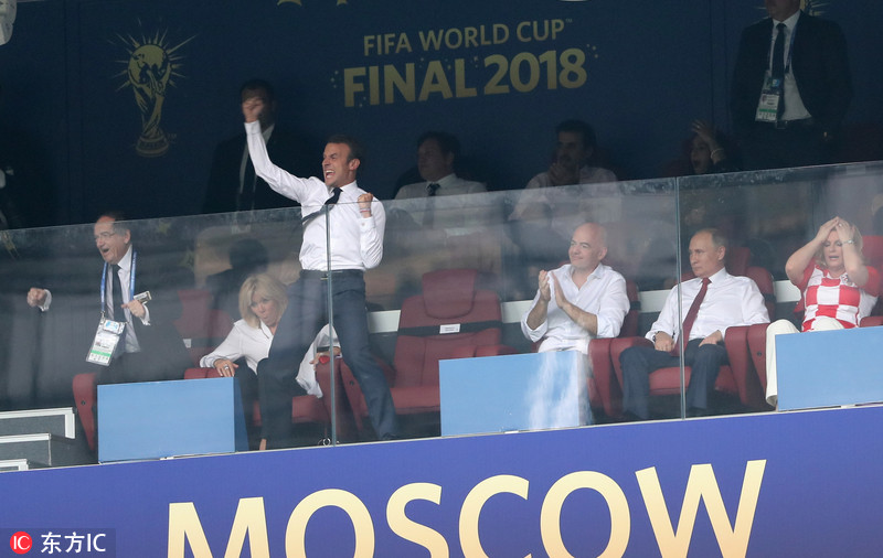 马克龙观看世界杯决赛 手舞足蹈成移动表情包