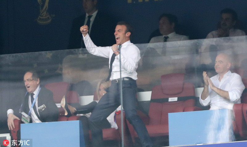 马克龙观看世界杯决赛 手舞足蹈成移动表情包