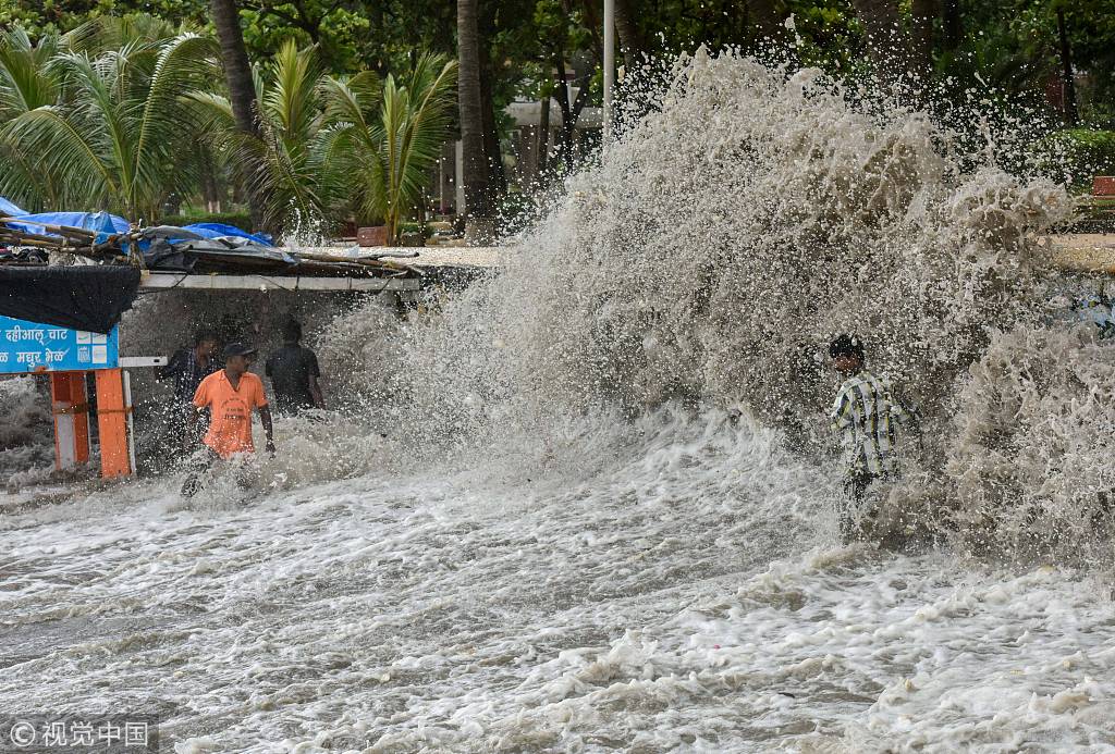 当地时间2018年7月14日,印度孟买,当地发布海浪预警,当天下午1:49,孟买出现4.97米的巨浪。