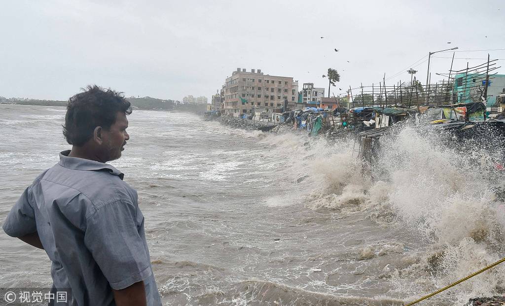 当地时间2018年7月14日,印度孟买,当地发布海浪预警,当天下午1:49,孟买出现4.97米的巨浪。