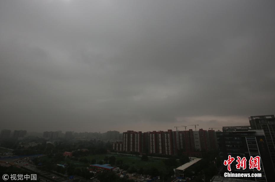 7月16日,北京上空乌云低垂,降雨持续,民众撑伞出行。北京市气象台16日14时40分继续发布暴雨蓝色预警,预计至16日夜间本市大部分地区将有雷阵雨天气,局地短时雨强较大,小时雨强可达30mm以上,山区及浅山区可能出现强降水诱发的中小河流洪水、山洪、地质灾害等次生灾害,低洼地区可能出现积水,请注意防范。图片来源:视觉中国