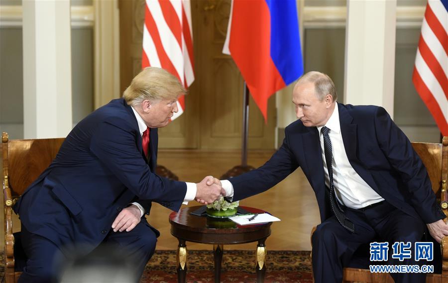 7月16日,美国总统特朗普(左)和俄罗斯总统普京在芬兰首都赫尔辛基举行会晤。这是特朗普就任美国总统以来,美俄两国总统首次举行正式会晤。 新华社发(海基·绍科马摄)