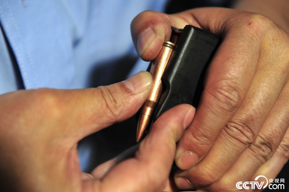 李光伟正在对警用枪弹药存放区进行编号登记排查。
