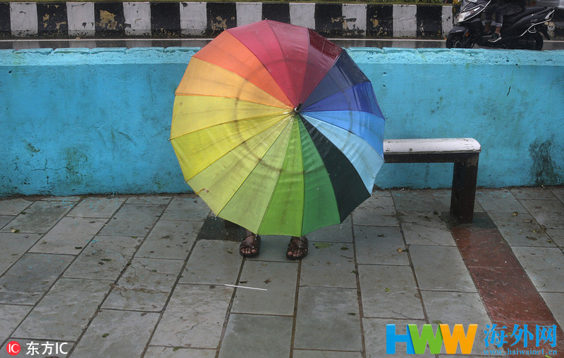 当地时间2018年7月16日,印度新德里,当地遭暴雨袭击引发洪灾,街头被淹成一片汪洋。