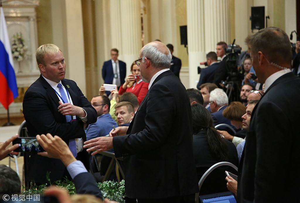 "普特会"记者会现不速之客 "记者"手持抗议标语遭驱逐