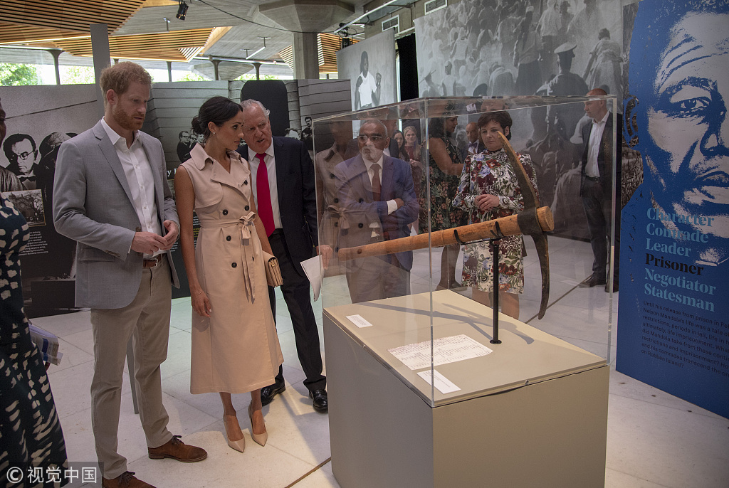 当地时间2018年7月17日,英国伦敦,哈里王子偕王妃梅根出席一场曼德拉诞辰百年纪念展活动。7月18日是已故南非前总统曼德拉诞辰100周年的日子。