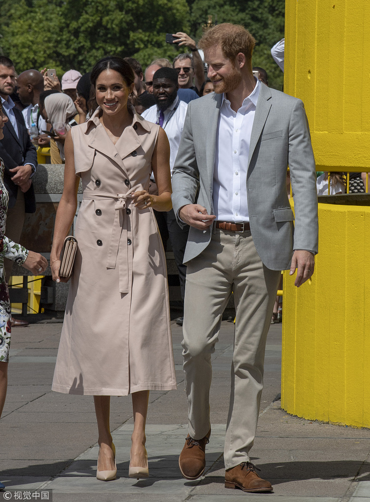 当地时间2018年7月17日,英国伦敦,哈里王子偕王妃梅根出席一场曼德拉诞辰百年纪念展活动。7月18日是已故南非前总统曼德拉诞辰100周年的日子。