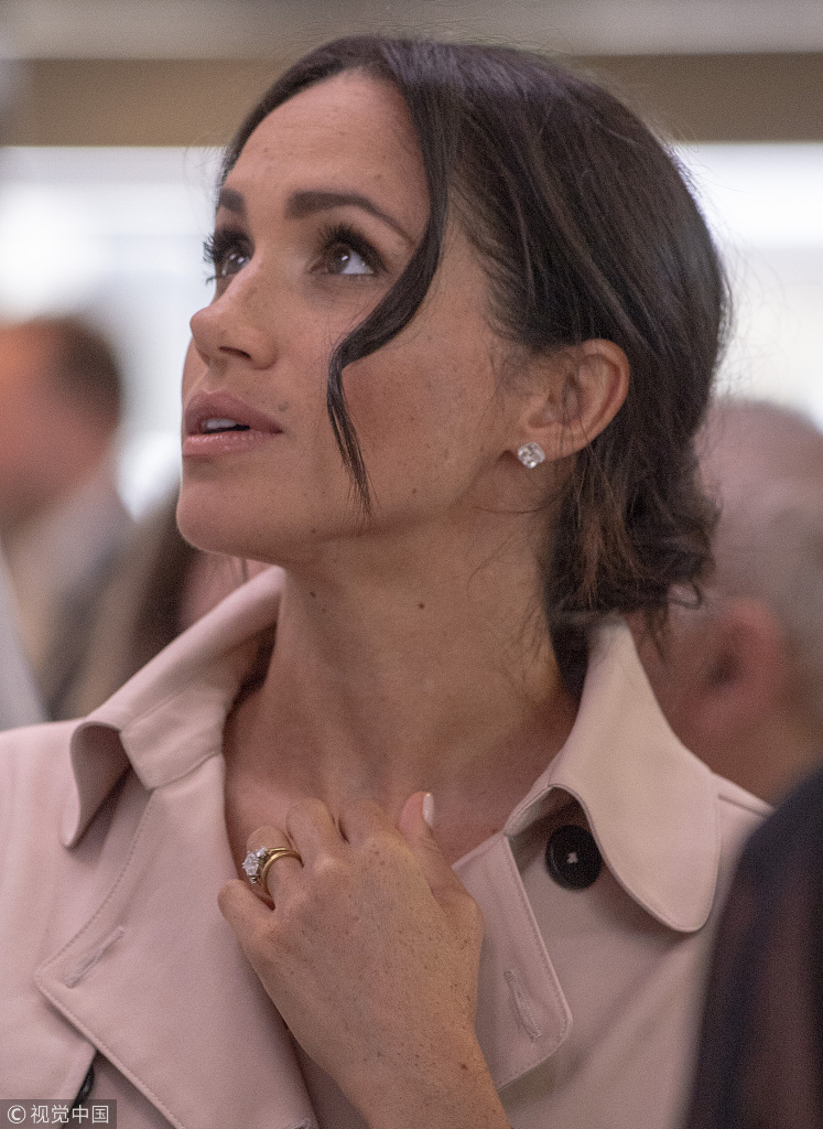 当地时间2018年7月17日,英国伦敦,哈里王子偕王妃梅根出席一场曼德拉诞辰百年纪念展活动。7月18日是已故南非前总统曼德拉诞辰100周年的日子。