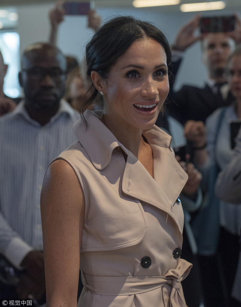 当地时间2018年7月17日,英国伦敦,哈里王子偕王妃梅根出席一场曼德拉诞辰百年纪念展活动。7月18日是已故南非前总统曼德拉诞辰100周年的日子。