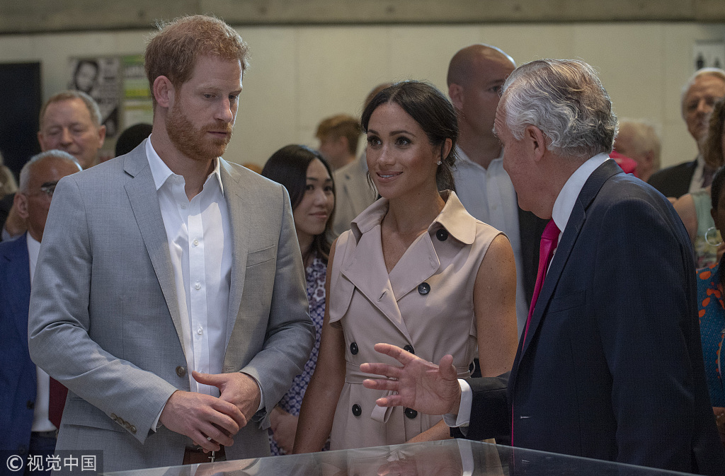 当地时间2018年7月17日,英国伦敦,哈里王子偕王妃梅根出席一场曼德拉诞辰百年纪念展活动。7月18日是已故南非前总统曼德拉诞辰100周年的日子。