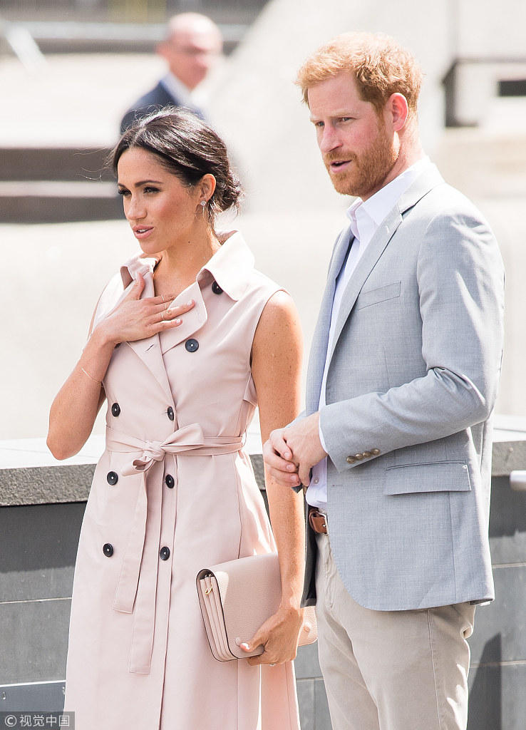 当地时间2018年7月17日,英国伦敦,哈里王子偕王妃梅根出席一场曼德拉诞辰百年纪念展活动。7月18日是已故南非前总统曼德拉诞辰100周年的日子。