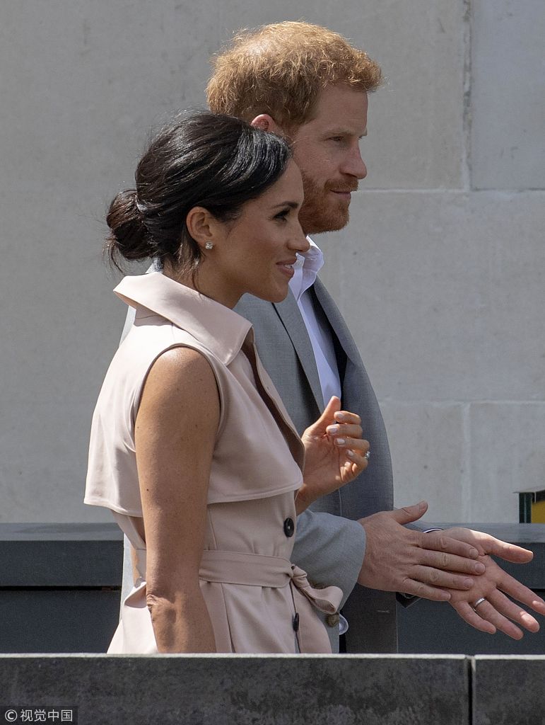 当地时间2018年7月17日,英国伦敦,哈里王子偕王妃梅根出席一场曼德拉诞辰百年纪念展活动。7月18日是已故南非前总统曼德拉诞辰100周年的日子。