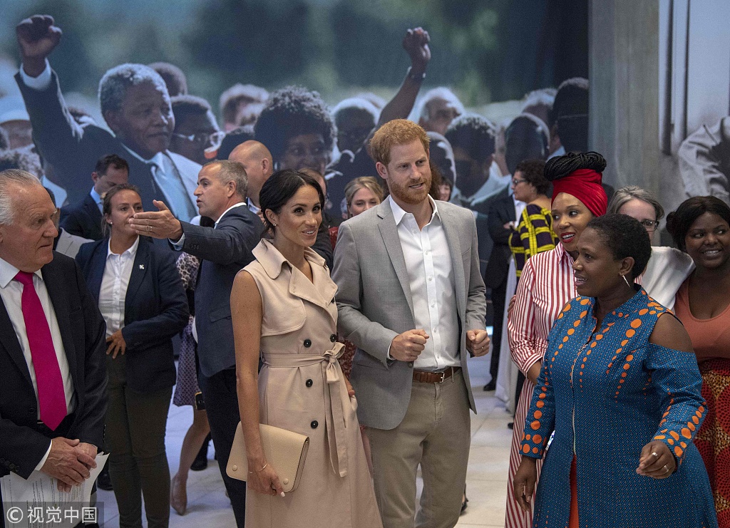 哈里王子夫妇出席曼德拉诞辰百年纪念展 甜蜜牵手撒狗粮
