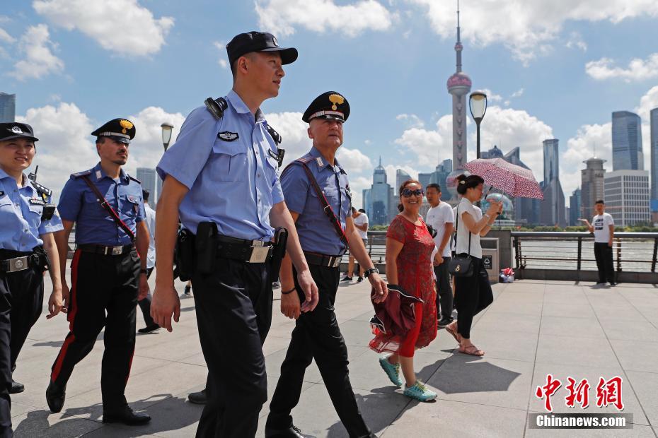 7月18日,中意警方第二次在华警务联合巡逻(上海站)启动仪式在外滩举行。即日起至7月29日,2名意大利警员与2名上海公安民警编为一组开展联合巡逻。他们将在陆家嘴、外滩等上海地标所在地以及浦东国际机场航站楼等人员密集区域进行联合巡逻。巡逻中,意大利警员将观摩中国警员接(处)警,并协助交流与意大利游客相关的警务信息等。 中新社记者 殷立勤 摄