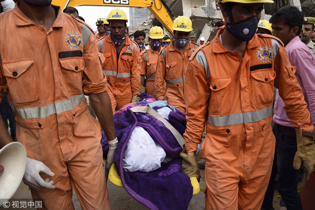 当地时间2018年7月18日,印度北方邦沙阿贝里村17日晚发生一起两栋楼房倒塌事故,造成至少5人死亡,当地警方估计仍有50多人被埋。当地官员说,事故发生在当晚10时左右。一栋6层在建楼房倒塌,撞向毗邻的另一栋4层楼房,两栋建筑沦为废墟。Hindustan Times/视觉中国