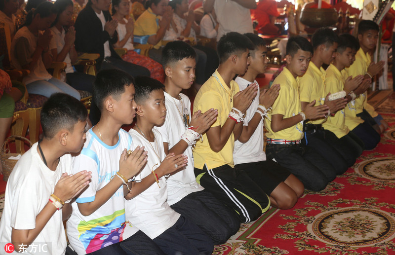 泰国少年足球队参加拜佛仪式 祭奠牺牲潜水员