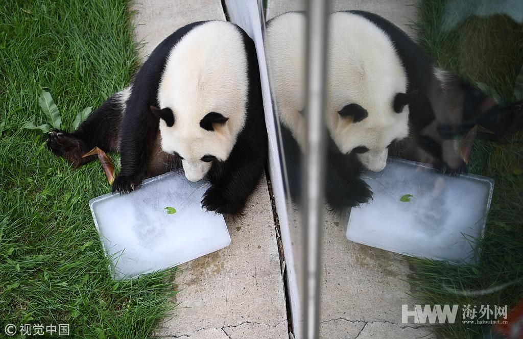 大熊猫开启避暑度假模式 怀抱冰块萌萌哒