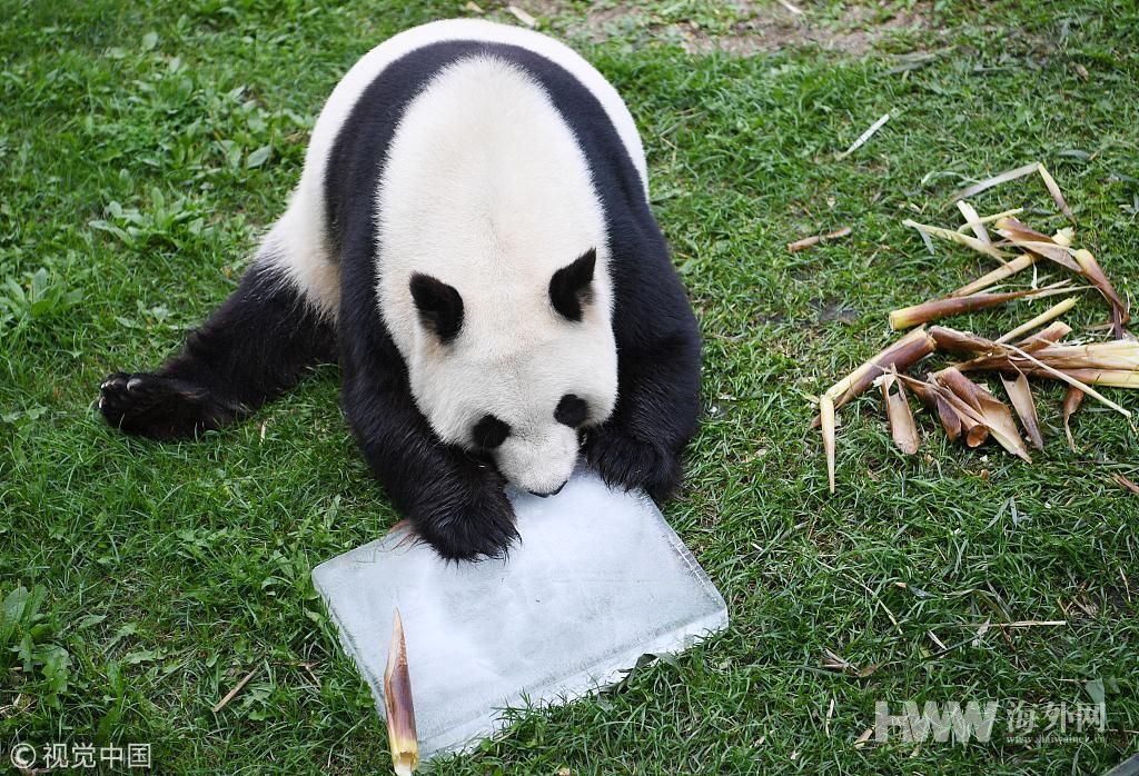 大熊猫开启避暑度假模式 怀抱冰块萌萌哒