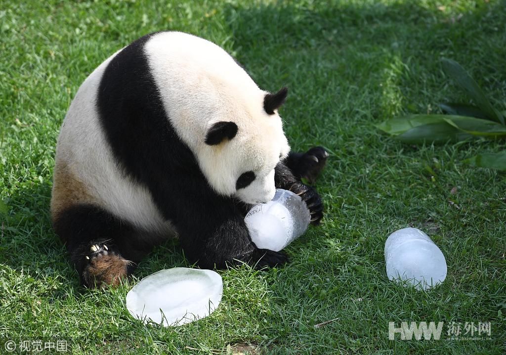 大熊猫开启避暑度假模式 怀抱冰块萌萌哒
