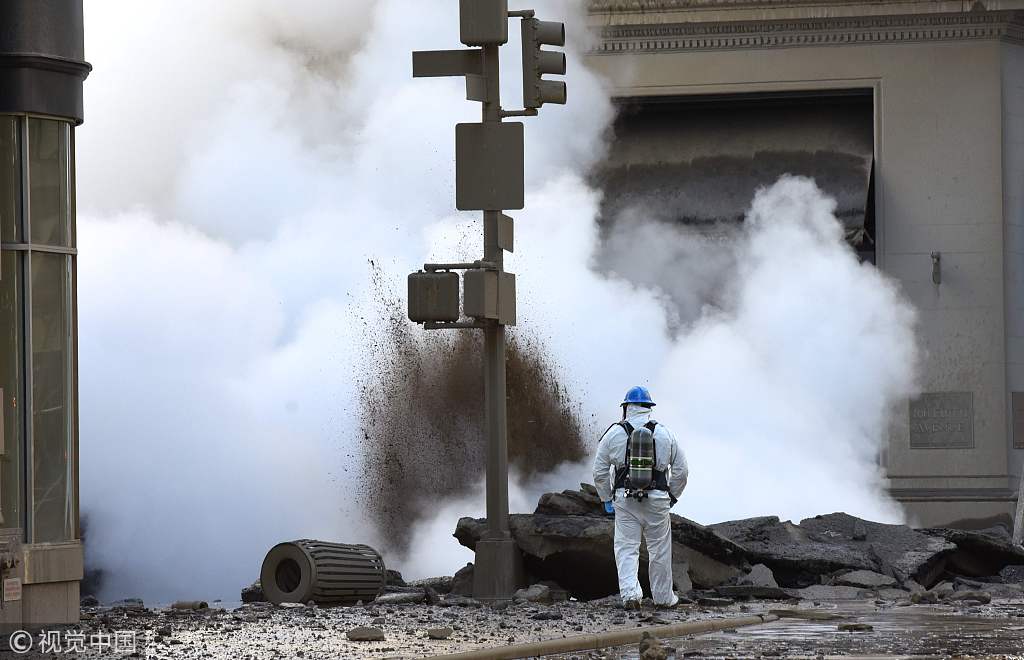 当地时间2018年7月19日,美国纽约,曼哈顿地区发生蒸汽管道爆炸事故,伤亡状况不明。