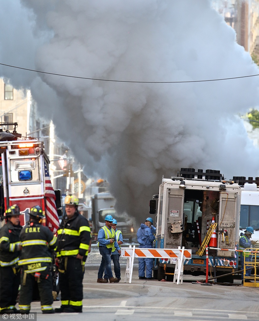 当地时间2018年7月19日,美国纽约,曼哈顿地区发生蒸汽管道爆炸事故,伤亡状况不明。