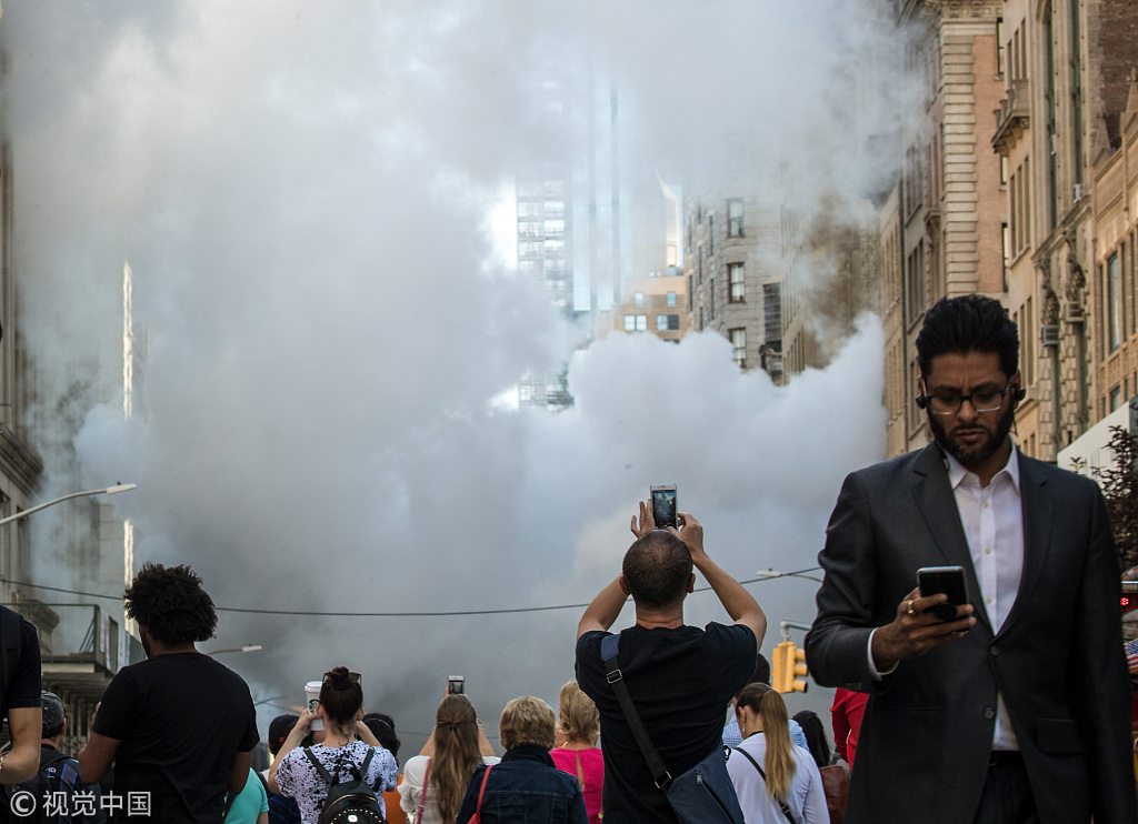 当地时间2018年7月19日,美国纽约,曼哈顿地区发生蒸汽管道爆炸事故,伤亡状况不明。