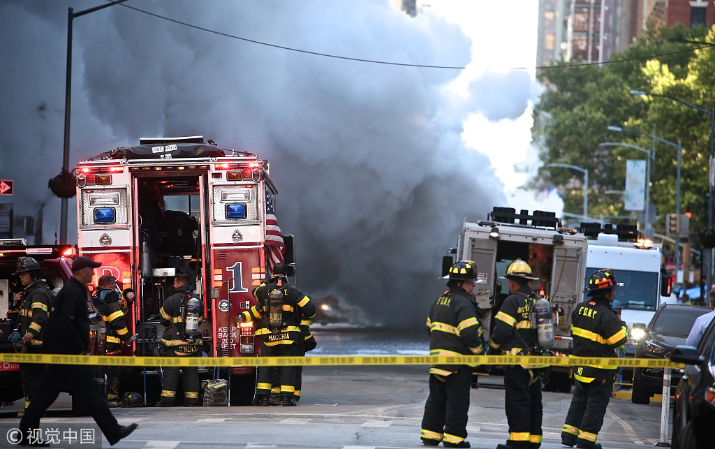 当地时间2018年7月19日,美国纽约,曼哈顿地区发生蒸汽管道爆炸事故,伤亡状况不明。