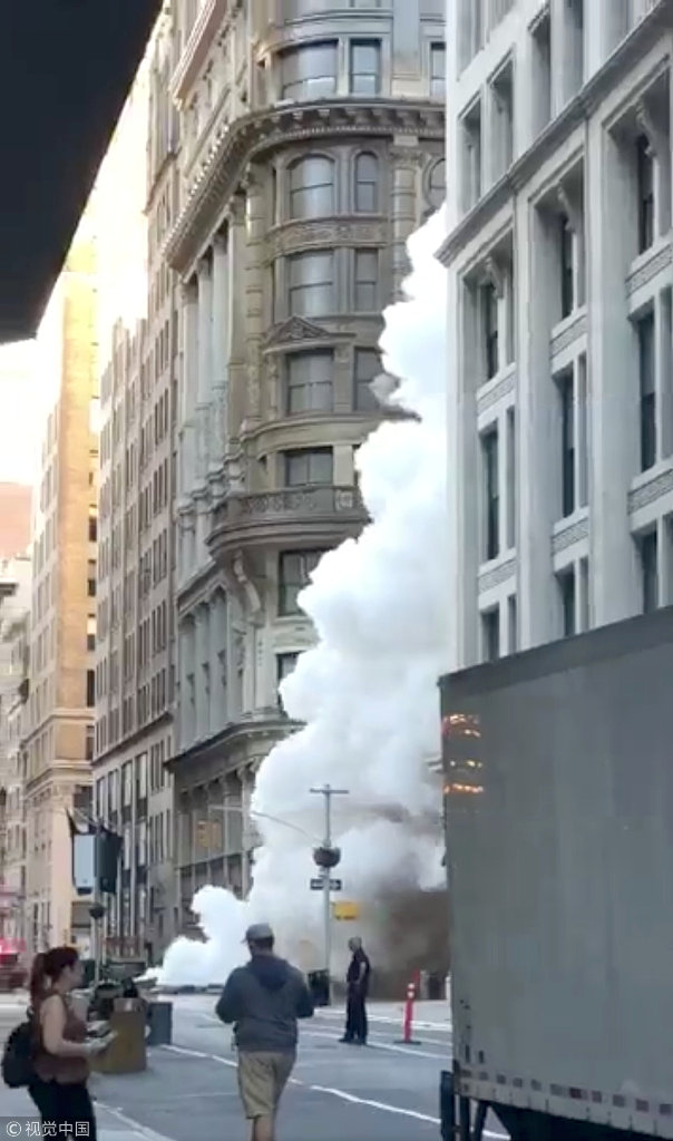 当地时间2018年7月19日,美国纽约,曼哈顿地区发生蒸汽管道爆炸事故,伤亡状况不明。