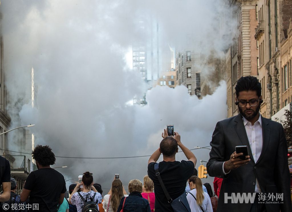 当地时间2018年7月19日,美国纽约,曼哈顿地区发生蒸汽管道爆炸事故,伤亡状况不明。