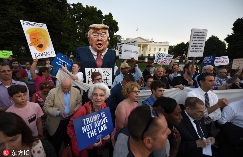 当地时间2018年7月18日,美国华盛顿,民众聚集在白宫外,发起“占领拉斐特公园”的活动,点燃蜡烛,抗议特朗普。