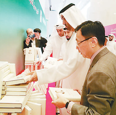 7月15日,在阿联酋阿布扎比举行的《习近平谈治国理政》中阿读者会上,与会嘉宾纷纷取阅。 资料图片