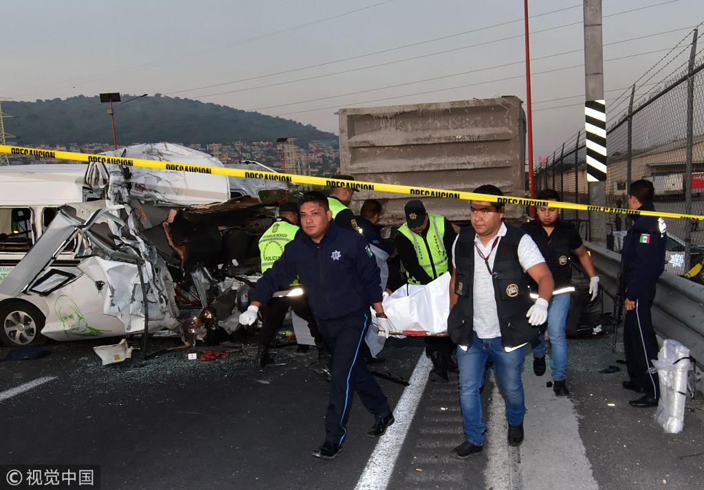当地时间2018年7月20日,墨西哥埃卡特佩克,当地一辆客车与卡车相撞,造成12人死亡,数人受伤。