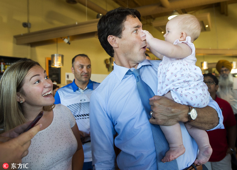 当地时间2018年7月20日,加拿大安大略省Bradford,加拿大总理特鲁多走访当地,与民众亲切互动。图片来源:东方IC