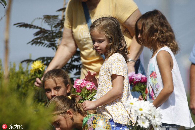 当地时间2018年7月20日,美国密苏里州布兰森,民众献花悼念游船倾覆事故遇难者。19日晚,一艘载有31人的水陆两栖游船在布兰森的泰布尔罗克湖遭遇强风暴,发生倾覆事故,之后游船迅速沉没。据密苏里州警方消息,目前死亡人数升至17人,其中包括儿童,船上其余14人获救。图片来源:东方IC