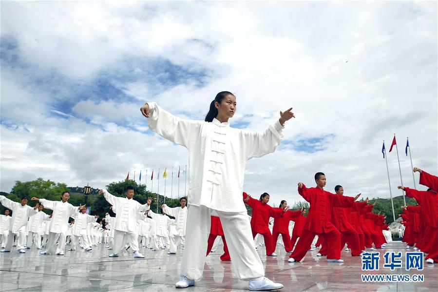 甘肃平凉古镇上演万人太极拳表演