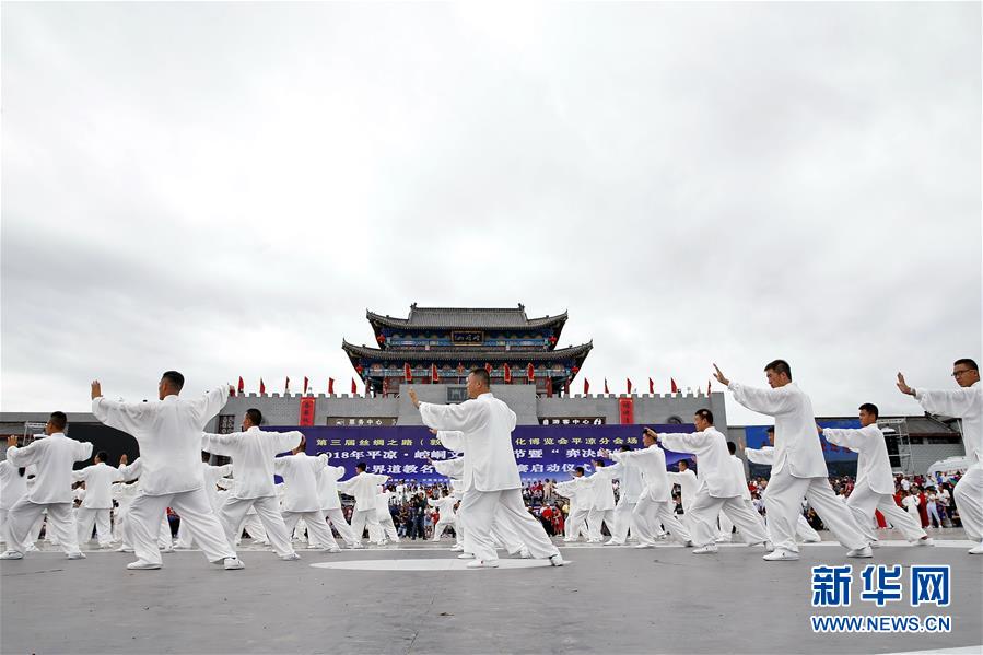 甘肃平凉古镇上演万人太极拳表演