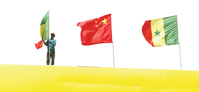 为欢迎习近平主席访问塞内加尔,中国援建的塞内加尔国家竞技摔跤场飘起中塞两国国旗。 本报记者 李志伟摄