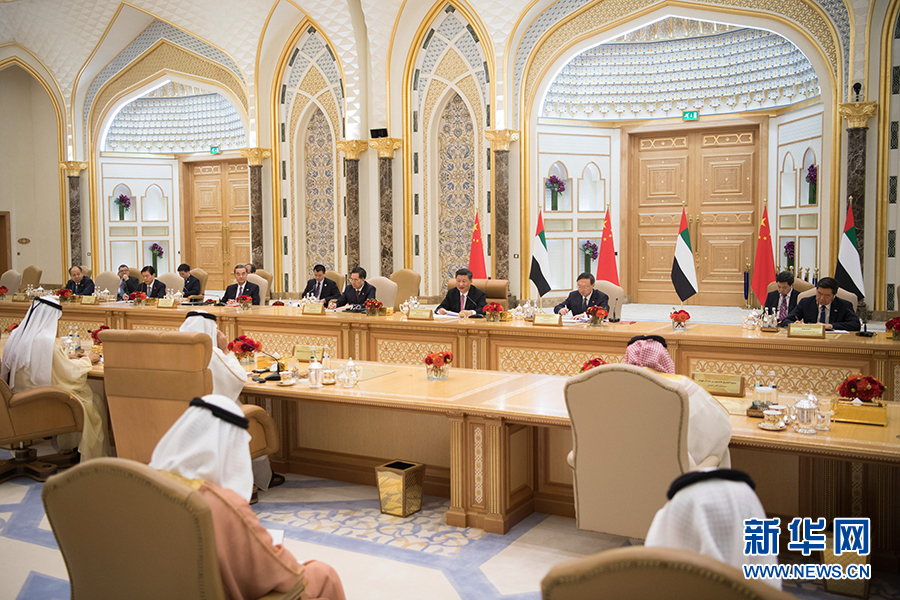 阿布扎比王储穆罕默德表示,我对2015年对中国的访问记忆犹新。阿方很高兴能接待习主席这次对阿联酋的历史性访问。我们十分钦佩中国取得的发展成就,高度认同习近平主席的远见卓识和治国理政理念,相信中国有着光明的未来,必将为世界和平和人类进步作出更大贡献。阿中在政治、经济、金融、科技、能源、人文等广泛领域拥有巨大合作潜力,深化同兄弟般中国的传统、战略、友好关系始终是阿联酋对外关系的重中之重。阿中关系提升至全面战略伙伴关系符合双方共同心愿,将更好造福两国人民。阿联酋坚定支持一个中国原则,赞赏中国在国际事务中的重要作用,愿密切同中国在发展、反恐等重大问题上的沟通和协调。
