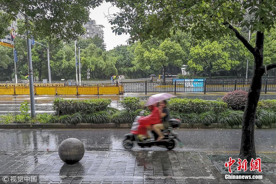 2018年7月22日,上海,台风“安比”当日中午登陆上海沿海,早10时许,杨浦区江浦路街头天色昏暗,风雨交加,路人行色匆匆。  图片来源:视觉中国