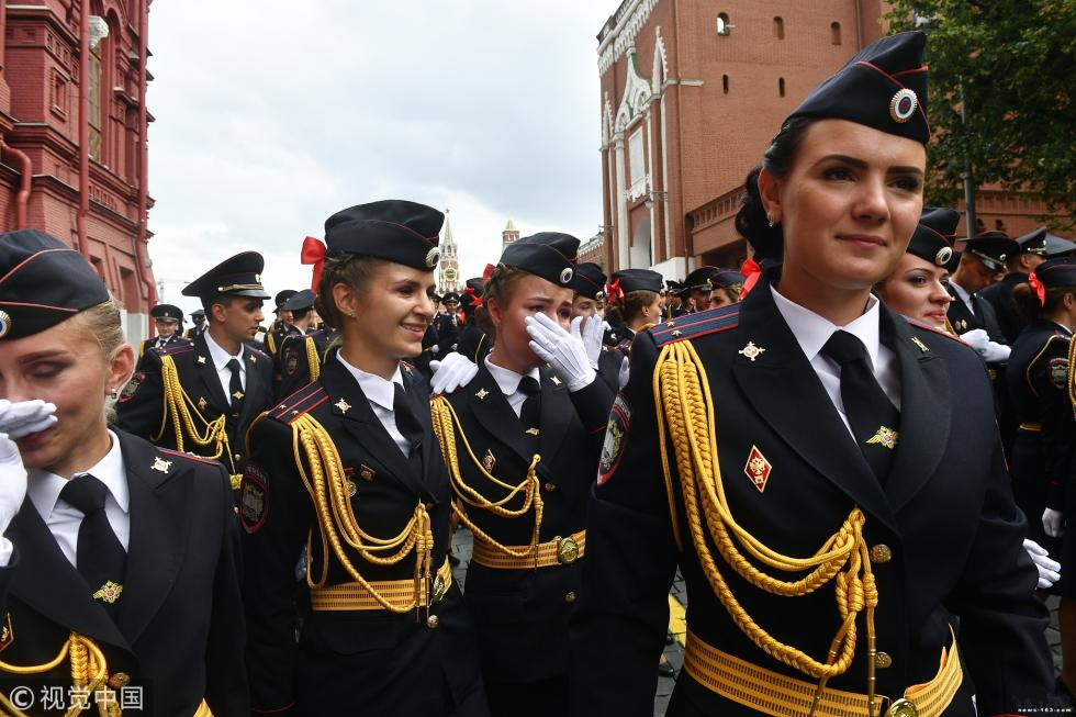 俄内务部莫斯科大学在红场举行毕业典礼 女学员英姿飒爽
