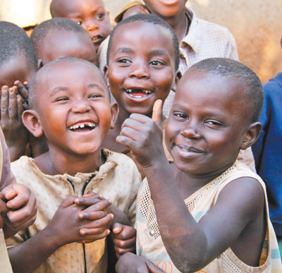 中国援助卢旺达农业技术示范中心附近村庄的小朋友。记者 裴广江摄