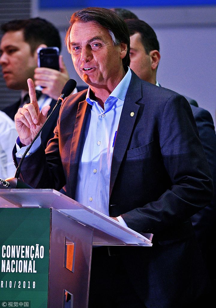 当地时间2018年7月22日,巴西里约,代表巴西社会自由党的贾伊尔·波索纳罗正式宣布参选10月份大选竞选总统。贾伊尔·波索纳罗被称为巴西版特朗普。