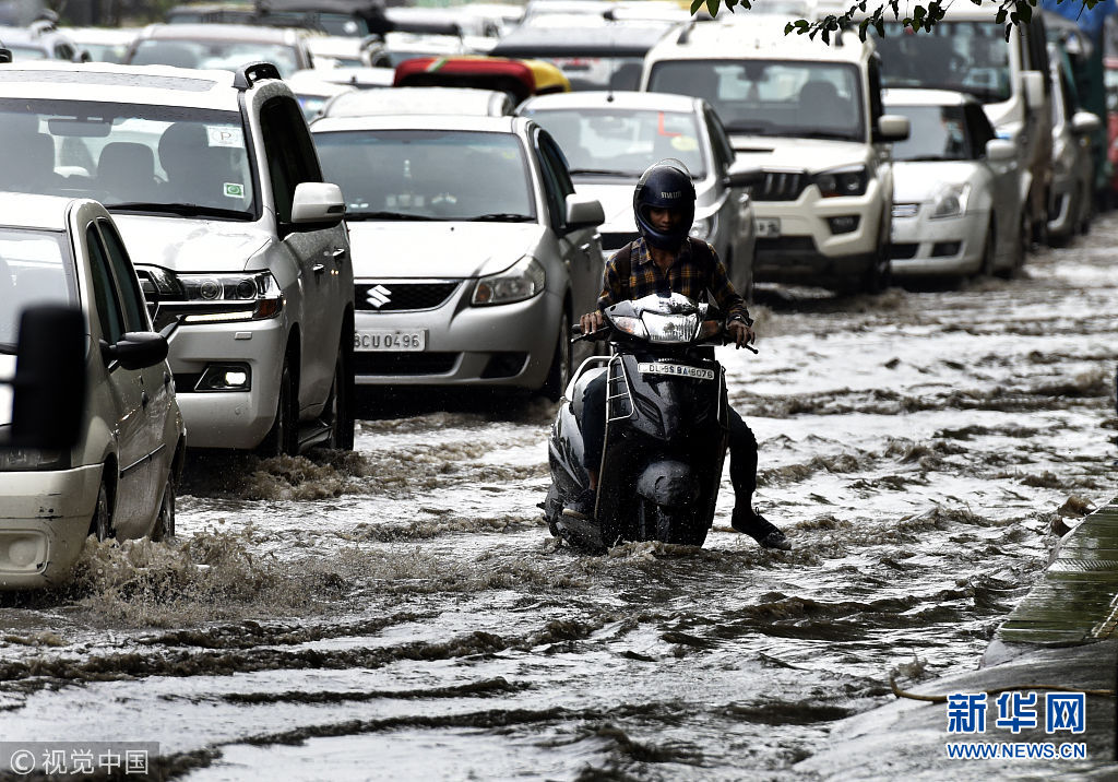 印度多地遭暴雨袭击 道路积水出行困难