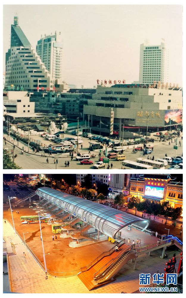 六、市府广场之变 上图:九十年代初市府广场金斗城 下图:2008年8月28日,刚建成的合肥老市府广场BRT公交枢纽 作者:庄道龙(下)