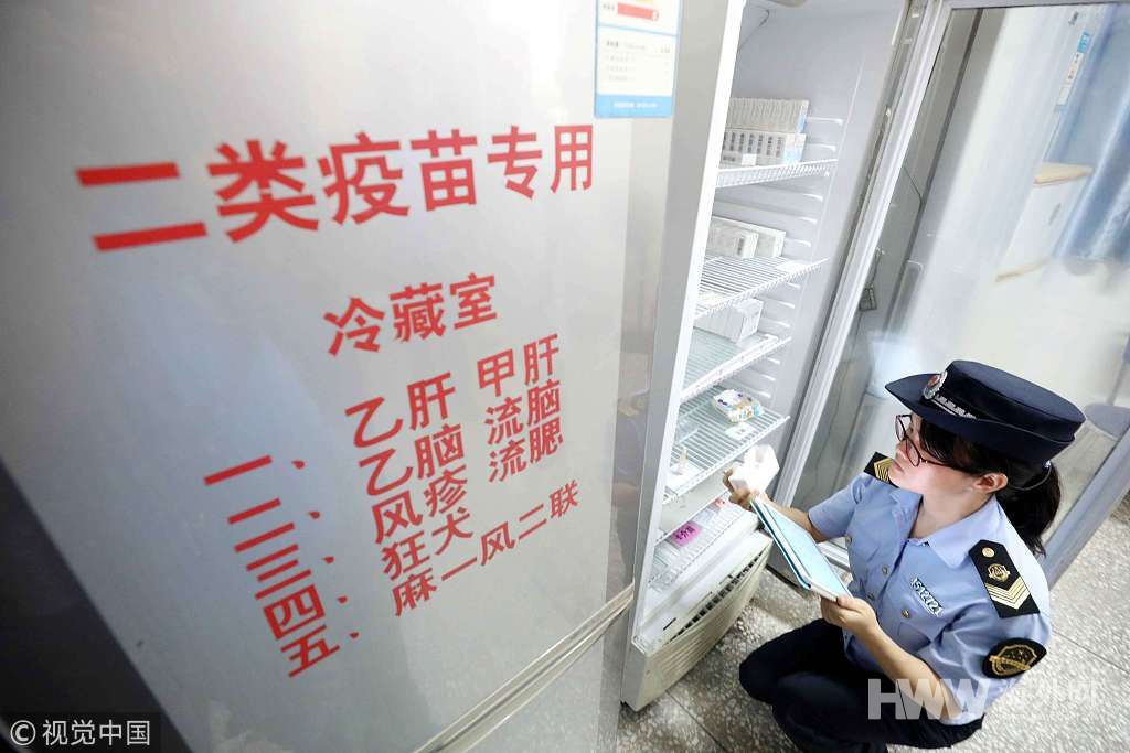 2018年7月23日,广西柳州,融安县市场监督管理局执法人员对辖区内疫苗经营和使用单位进行“拉网式”排查,严查疫苗进货渠道、品种、数量、批号、购销流向等情况,严防“问题疫苗”在市场流通,确保辖区人民群众使用药品安全。