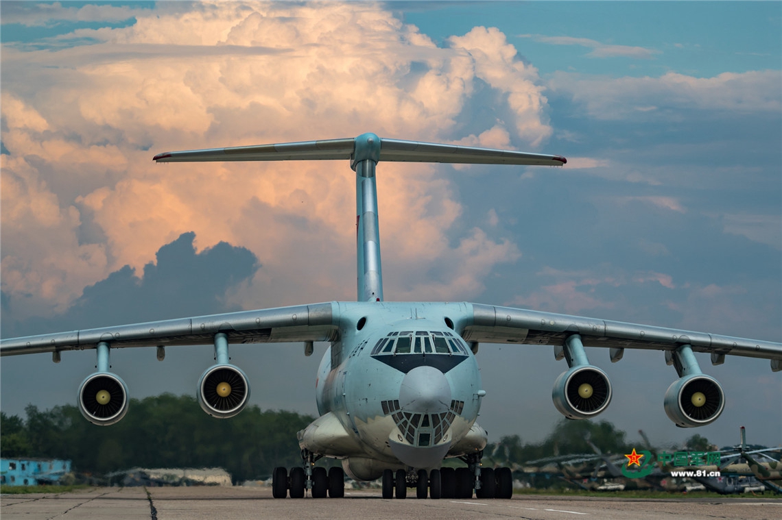 当地时间7月21日,伊尔-76飞机滑向停机位。