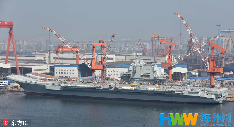 国产航母与辽宁舰双线作业 建设者高温下铸大国重器