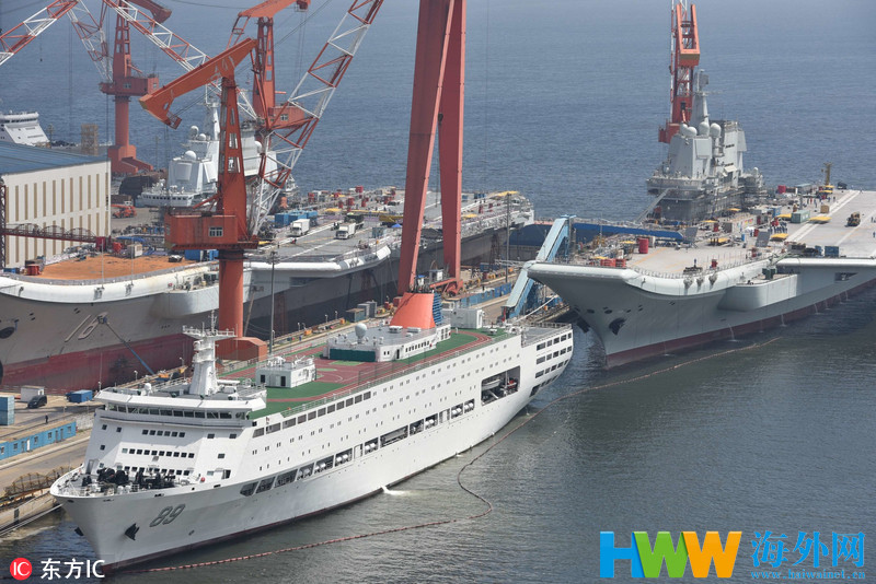 国产航母与辽宁舰双线作业 建设者高温下铸大国重器