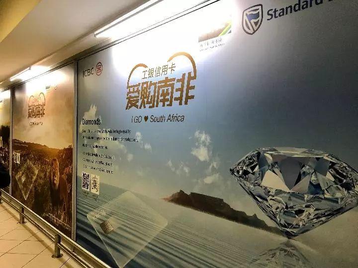 约翰内斯堡奥利弗?坦博国际机场内,中国工商银行和南非标准银行联合推出的中英双语广告非常醒目。